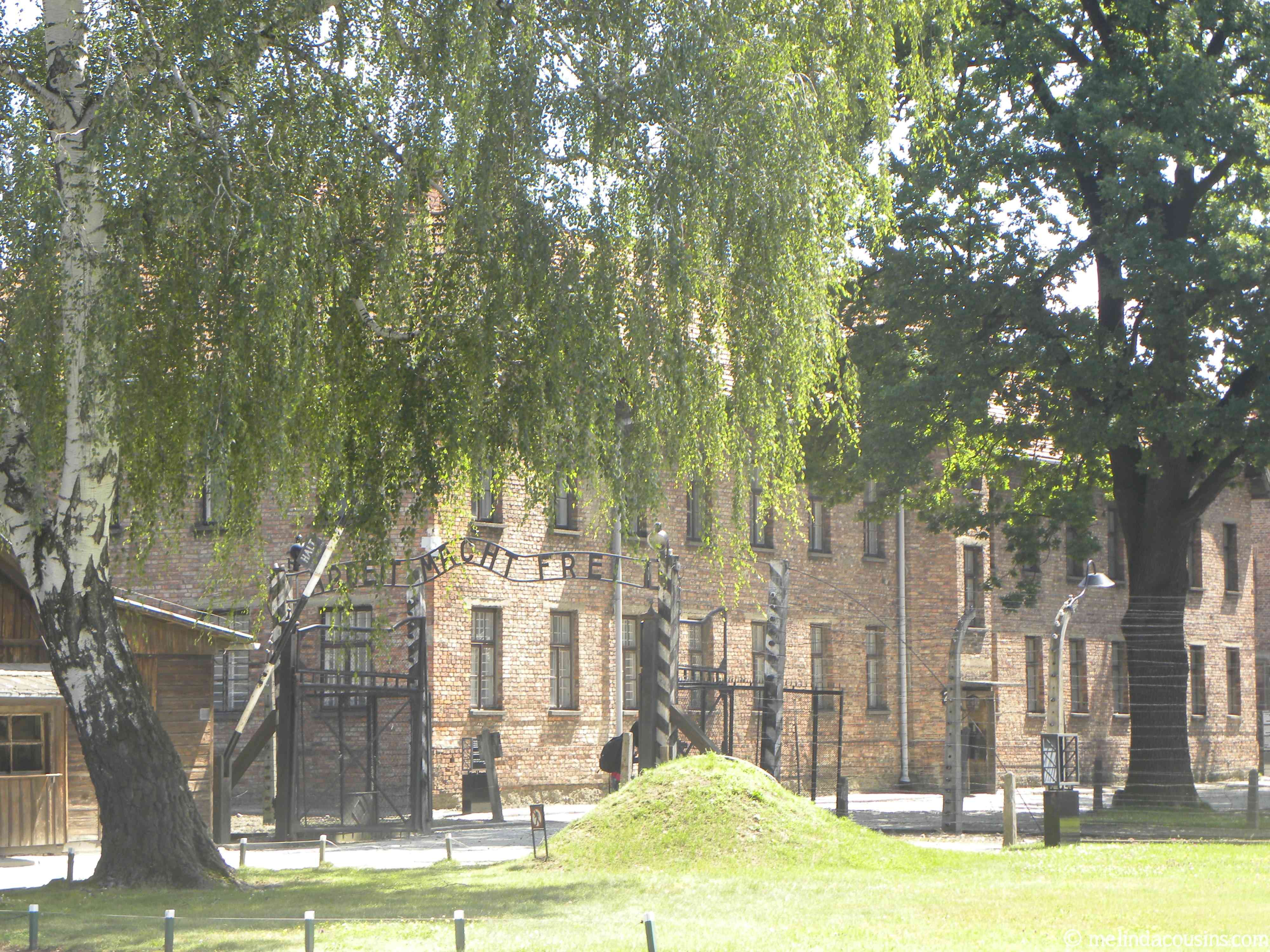 How should you look upon the gate with its infamous “Work brings freedom” sign, and the place behind it where the orchestra was forced to play happy songs as their families and neighbours marched out to work, often to their torture and death?